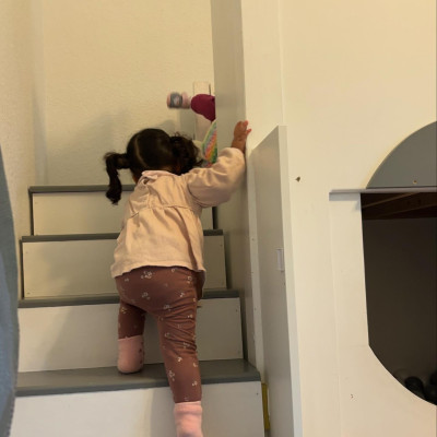 Auch alltägliche Situationen bieten viele Bewegungsanlässe. Beim Treppensteigen, beim Überwinden kleiner Höhen oder beim selbstständigen Auf- und Absteigen trainieren die Kinder Gleichgewicht, Koordination und Muskelkraft. Ich begleite diese Situationen aufmerksam und greife nur unterstützend ein, wenn ein Kind Hilfe benötigt. So können die Kinder eigene Erfolgserlebnisse machen und Vertrauen in ihre Fähigkeiten entwickeln.